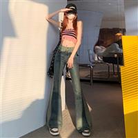 YF1238-图片色港味高腰阔腿直筒洗水做旧暗纹坠感大码复古牛仔裤