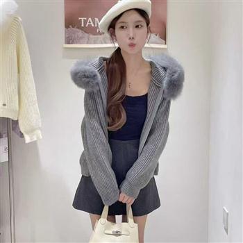 YF6682-(5色入内)港式学院风长袖连帽毛毛围高级感设计拉链防风休闲百搭针织毛衣
