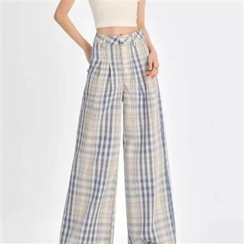 YF7155-图片色英伦风复古格子排扣设计系腰直筒坠地感休闲百搭阔腿裤