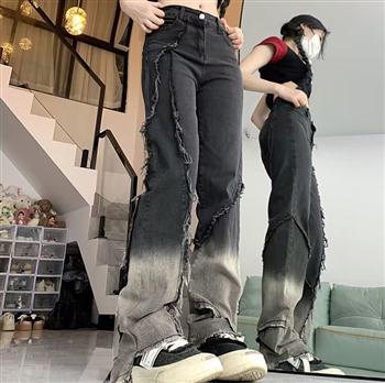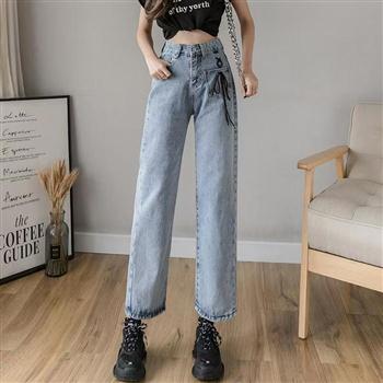 YF3172-(4色入内)港味高腰系扣直筒坠地感休闲牛仔裤 学院风九分裤