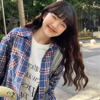 YF7085-图片色学院风复古格子长袖翻领胖MM显瘦慵懒风刺绣字母春夏百搭衬衫
