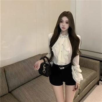 YF3191-(3色入内)时尚短袖翻领工装双口袋弧边衬衫搭松紧腰阔腿短裤 休闲套装