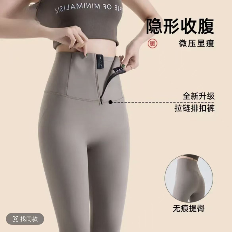 YF7053-(3色入内)春秋三排扣收腹高腰弹力包臀紧身瘦腿泥鲨鱼皮运动保暖打底裤