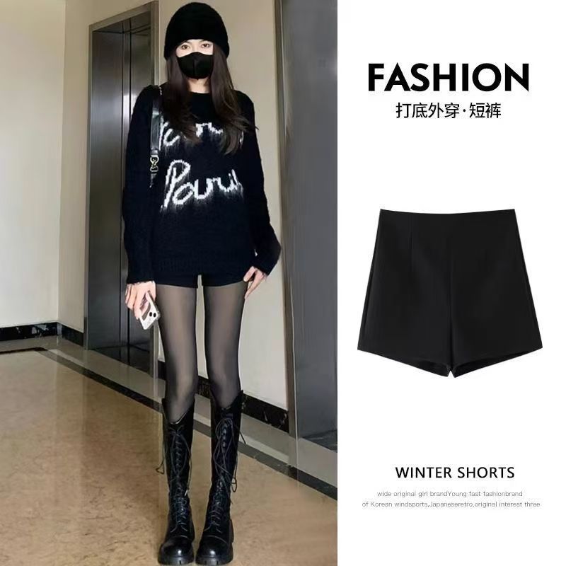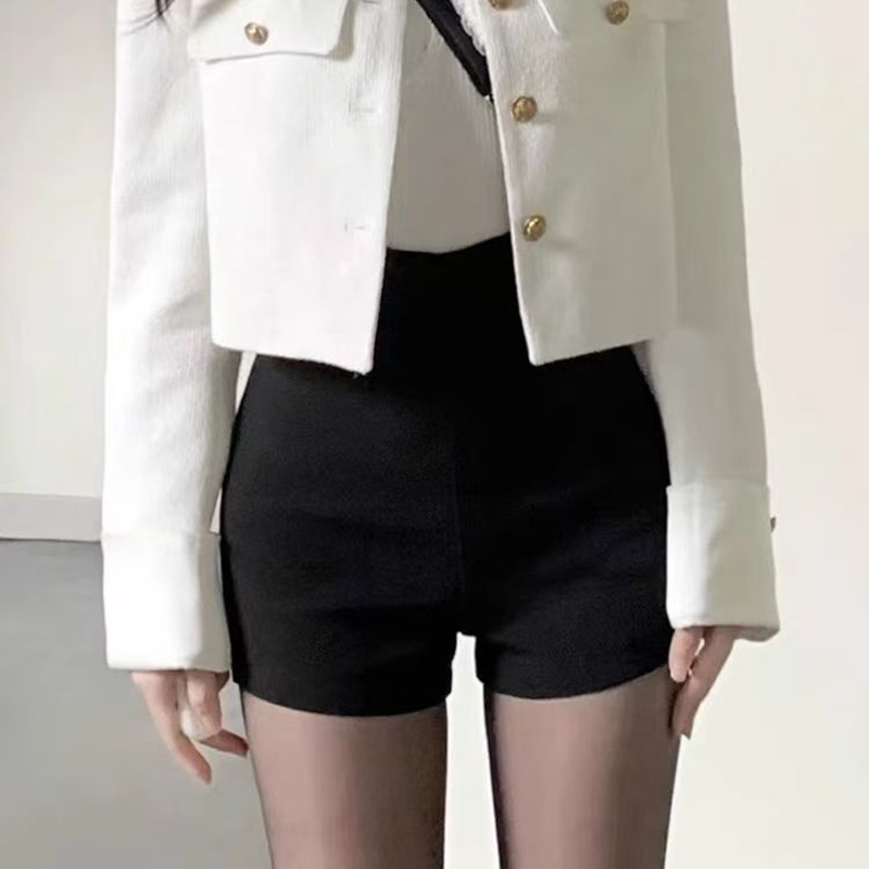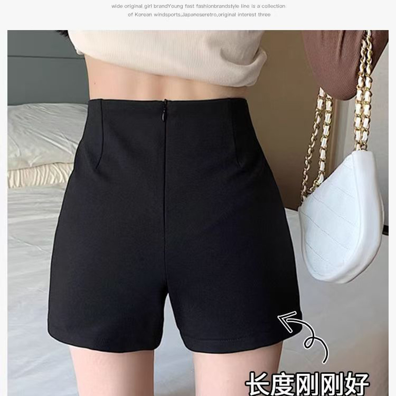 YF7055-图片色夏季辣妹性感包臀高腰褶折阔腿黑色韩版小个子西装热裤