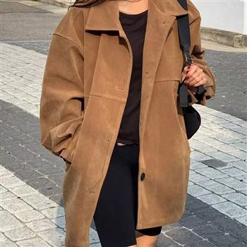 YF6011-图片色冬装长袖翻领排扣宽松大码仿麂皮磨毛绒面韩版休闲外套