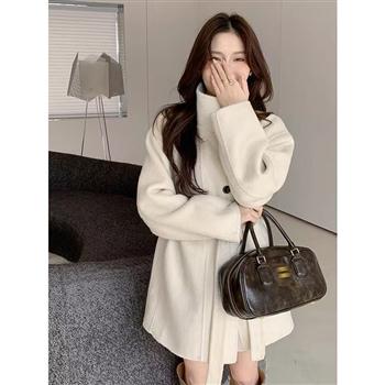 YF6099-图片色韩版高级感冬季暗格长袖翻领中长款过膝保温毛呢大衣外套