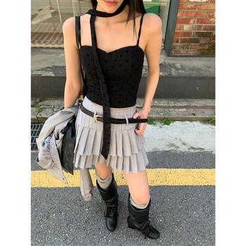 YF6199-(2色入内)韩版新款百褶短裙 时尚OL通勤双层防走光设计半身裙