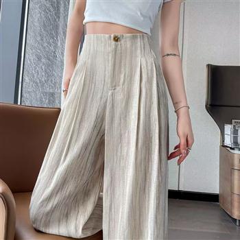 YF7498-(3色入内)港式时尚暗纹褶折直筒坠地感慵懒风休闲百搭冰丝清凉西裤