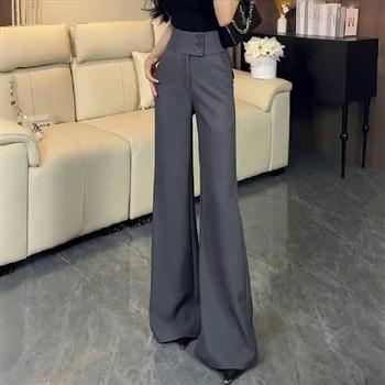 YF7501-(2色入内)时尚个性双排扣收腹高腰微嗽叭坠地感夏季新款休闲西裤