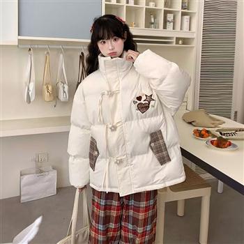 YF6243-(3色入内)小可爱星星爱心刺绣长袖连肩防风拉链加厚温暖羽毛绒外套