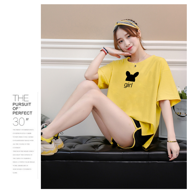 Y5184-(3色入内)港味夏装爆款米奇字母印花宽松短袖套头松紧腰短裤套装团队运动装