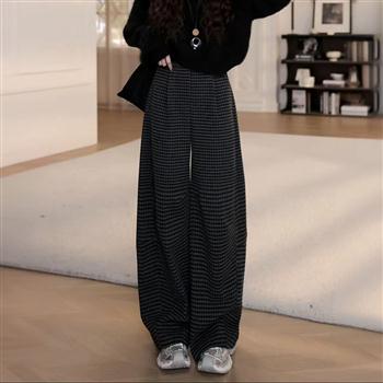 YF6642-(3色入内)韩版时尚新款双排扣个性收腹高腰直筒坠地感阔腿休闲西装裤