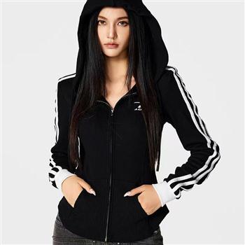 YF6111-图片色时港式运动休闲字母印花长袖连帽抽绳拉链设计修腰显瘦上衣
