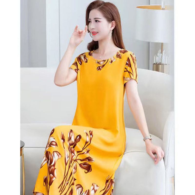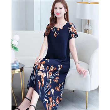 Y9522-(3色入内)优雅时尚夏装清爽短袖套头优雅气质花朵印花冻龄连衣裙