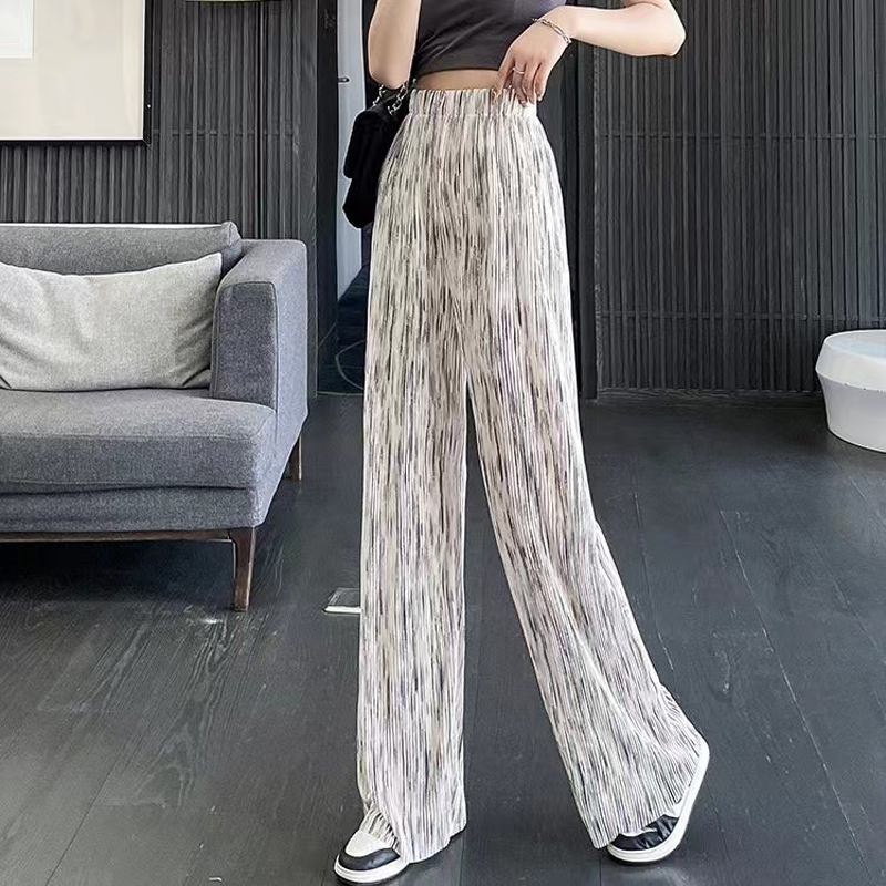 YF1228-(2色入内)夏季薄款高腰垂感清凉条纹直筒宽松飘逸雪纺直筒裤
