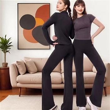 YF7189-图片色微喇叭收腹低腰提臀显瘦黑色百搭紧身坠地感西装阔腿裤