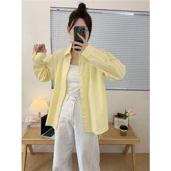 YF7190-(4色入内)韩版时尚新款长袖翻领系扣纯色慵懒风显瘦盐系设计感衬衣