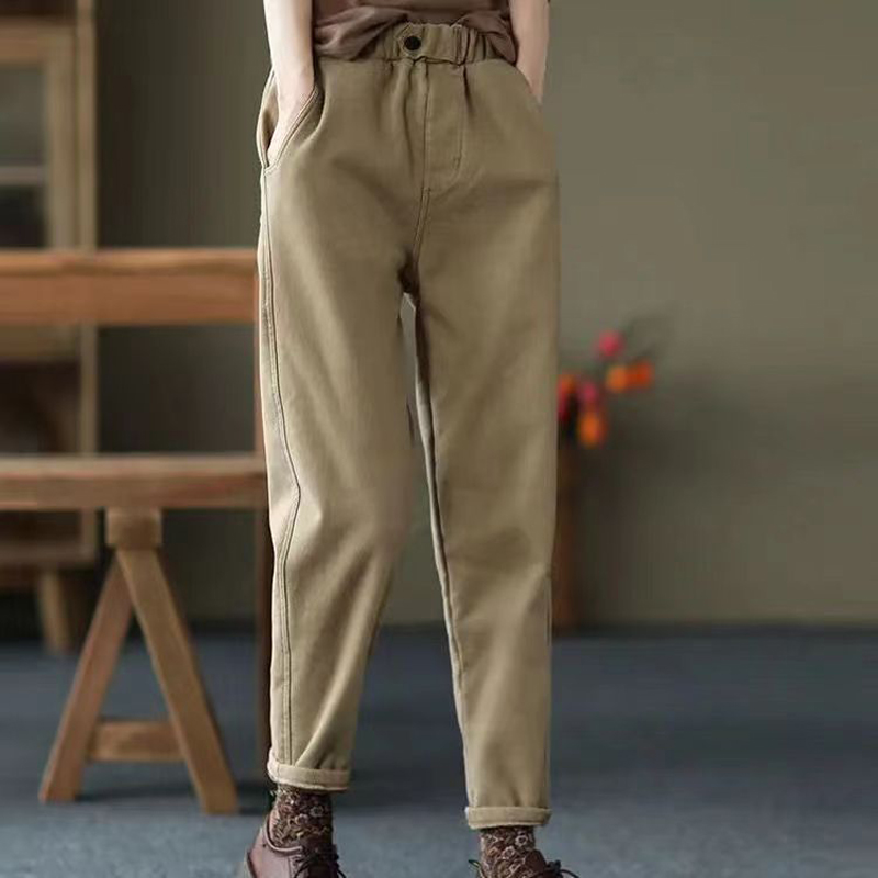 YF2083-(3色入内)纯棉工装休闲裤 慵懒风时尚春季松紧腰系扣萝卜裤