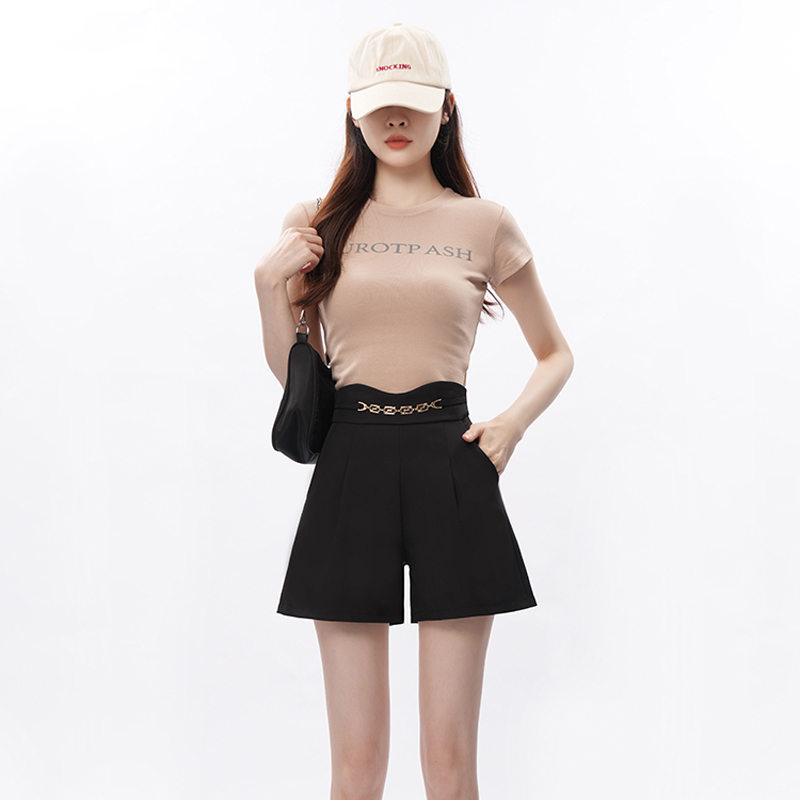 YF2759-图片色夏季新款高腰链条弧边阔腿裤 休养百搭A字西装裤