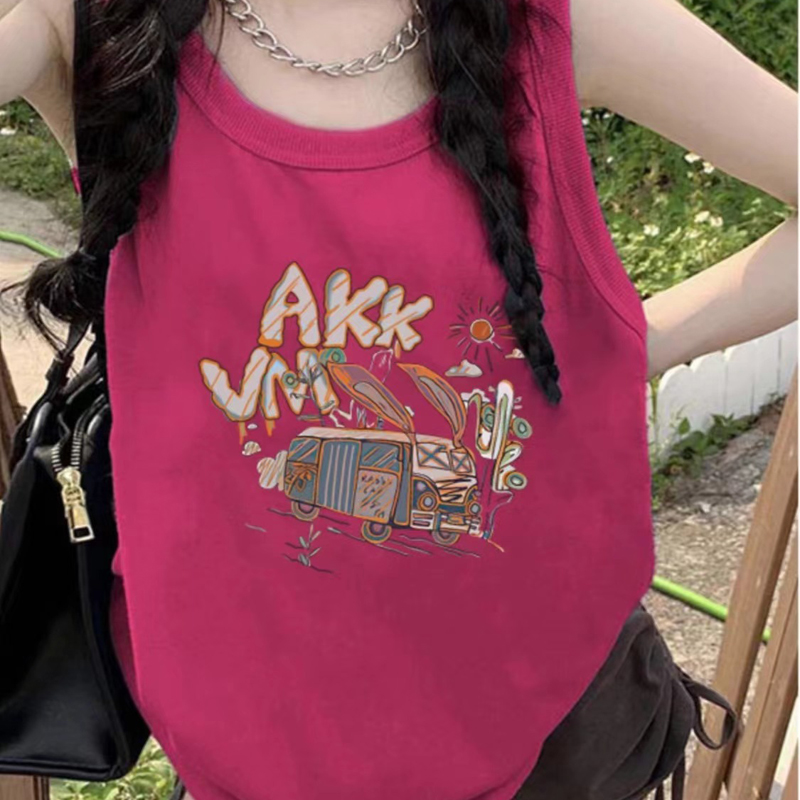 YF2864-(3色入内)可爱卡通巴士兔字母印花运动休闲二色拼接背心