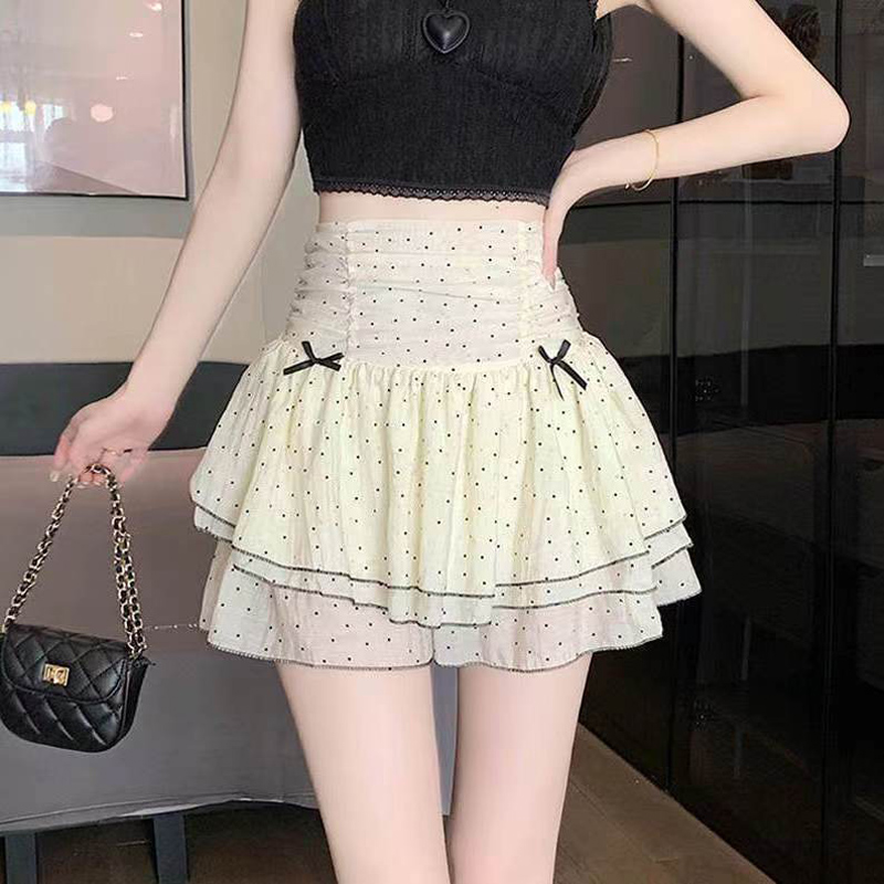 YF3154-(2色入内)甜美高腰收腹藏肉设计系蝴蝶结防走光内衬蓬蓬裙 波点短裙