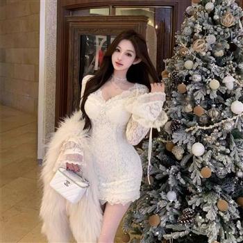 YF3711-(2色入内)时尚别致高级级长袖套头蕾丝连衣裙 新款得体显瘦打底裙