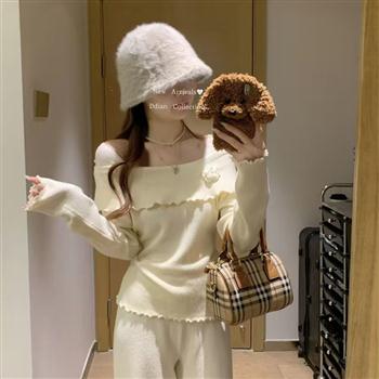 YF6132-图片色秋冬两件套铆钉十字装饰设计感长袖U字辣妹装弹力修身上衣