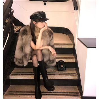 YF6127-图片色名媛气质仿狐狸皮草斑点设计宽松大码长袖开衫毛毛上衣