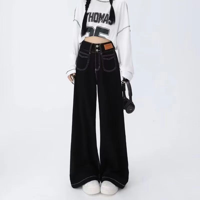 YF4133-图片色东大门韩版新款系扣贴标直筒前置口袋慵懒风休闲牛仔裤