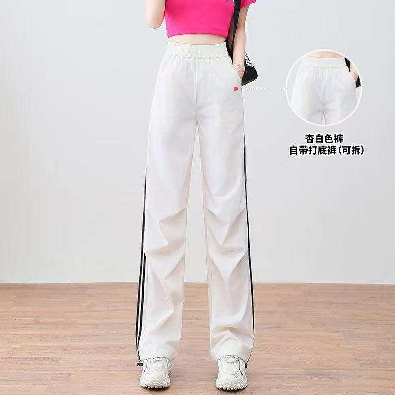 YF4276-(5色入内)时尚休闲侧条纹直筒松紧腰坠地感运动休闲裤 糖果色长裤