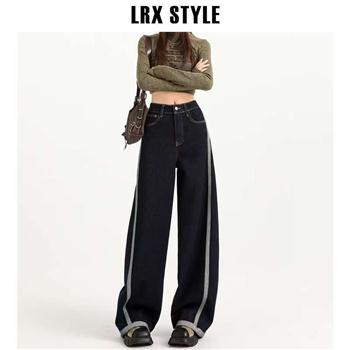 YF6177-图片色时尚小众设计渐变纹系扣设计坠地感撞色慵懒风牛仔休闲裤