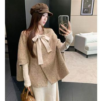 YF6267-图片色复古洋气蝙蝠袖设计宽松大码套头开叉冬季毛呢斗蓬披肩
