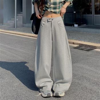 YF6192-(3色入内)港式时尚工艺褶折流苏感口袋设计直筒慵懒风休闲卫衣裤
