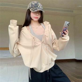 YF6193-(2色入内)秋冬新款抽绳连帽宽松大码蝙蝠袖休闲百搭慵懒风卫衣