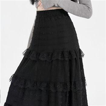 YF6197-(2色入内)加绒秋冬松紧腰A字花边拼接中长款蛋糕款蓬蓬蕾丝半身裙