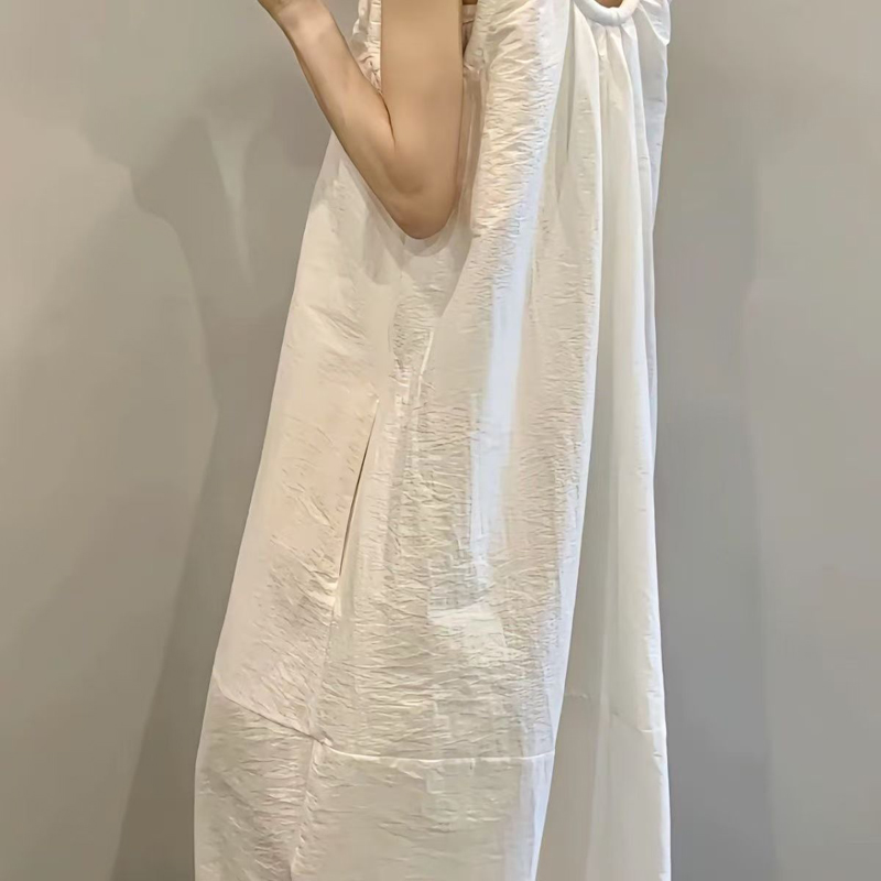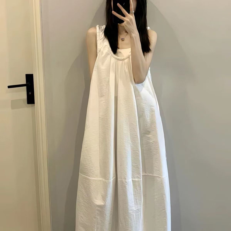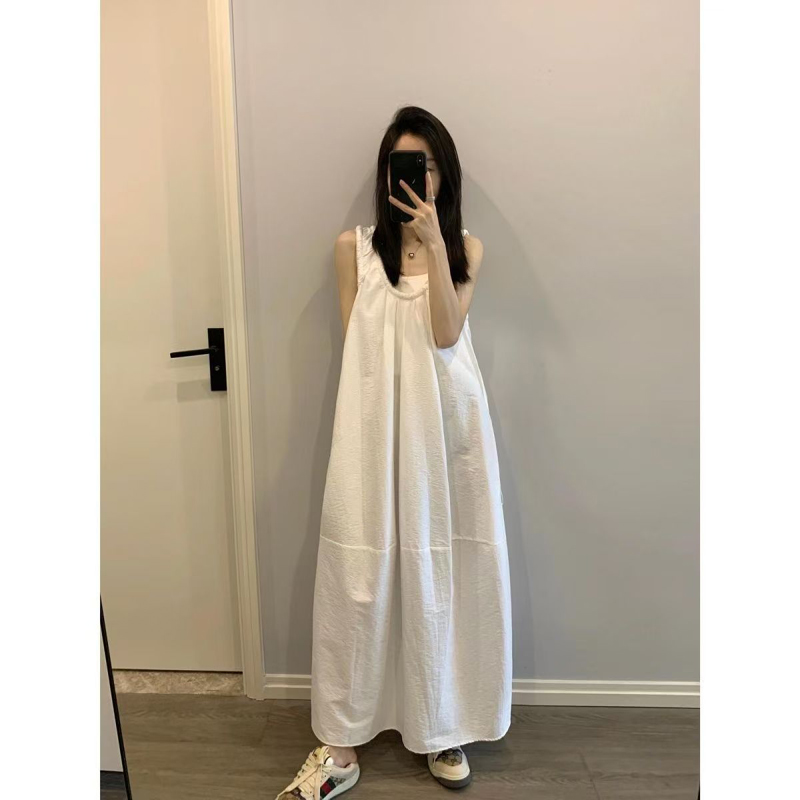 YF4570-图片色韩版夏季别致新款U型吊带背心裙 宽松藏肉中长款大码连衣裙