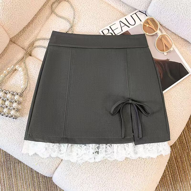 YF4692-(3色入内)甜美新款波点开叉蕾丝拼接A字优雅夏季妙龄少女气质短裙
