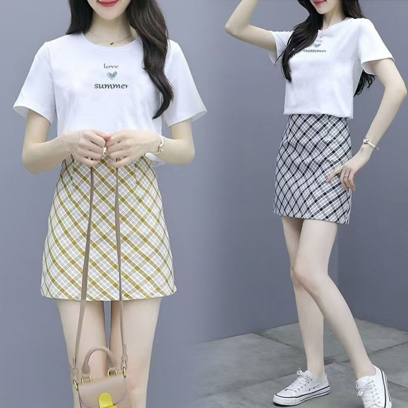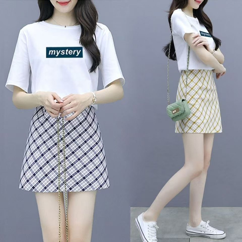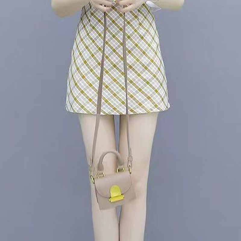 YF5578-(2色入内)韩版复古不规则格子菱形A字港式洋气学院风防走光短裙
