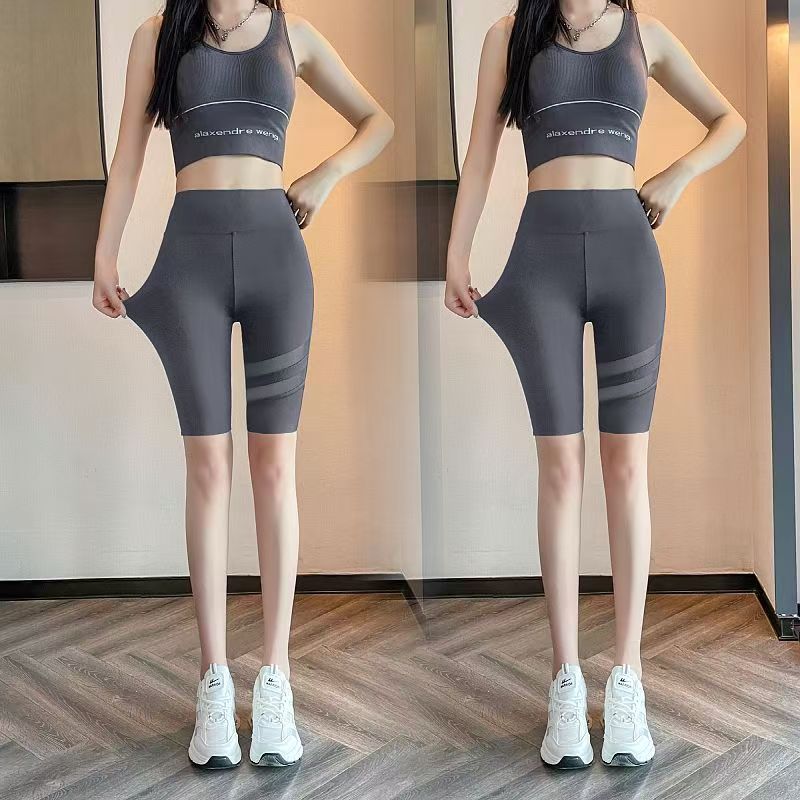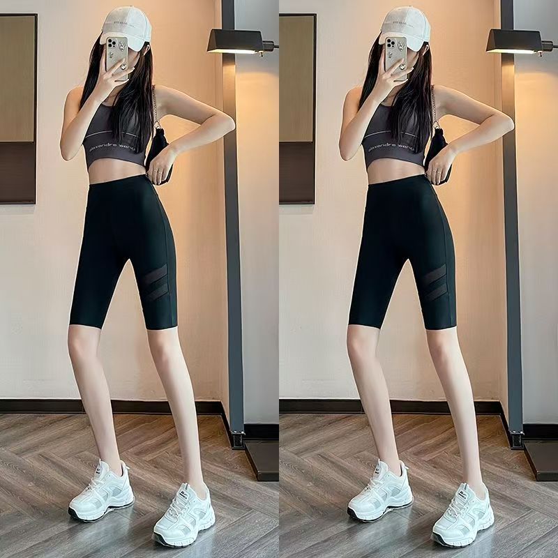 YF5590-(2色入内)鲨鱼皮冰凉网纱拼接收腹高腰弹力提臀外穿运动芭比打底裤