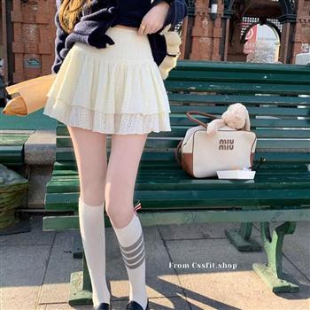 YF5881-图片色秋冬不规则系蝴蝶结假两件拼接A字中长款高腰学院风半身裙