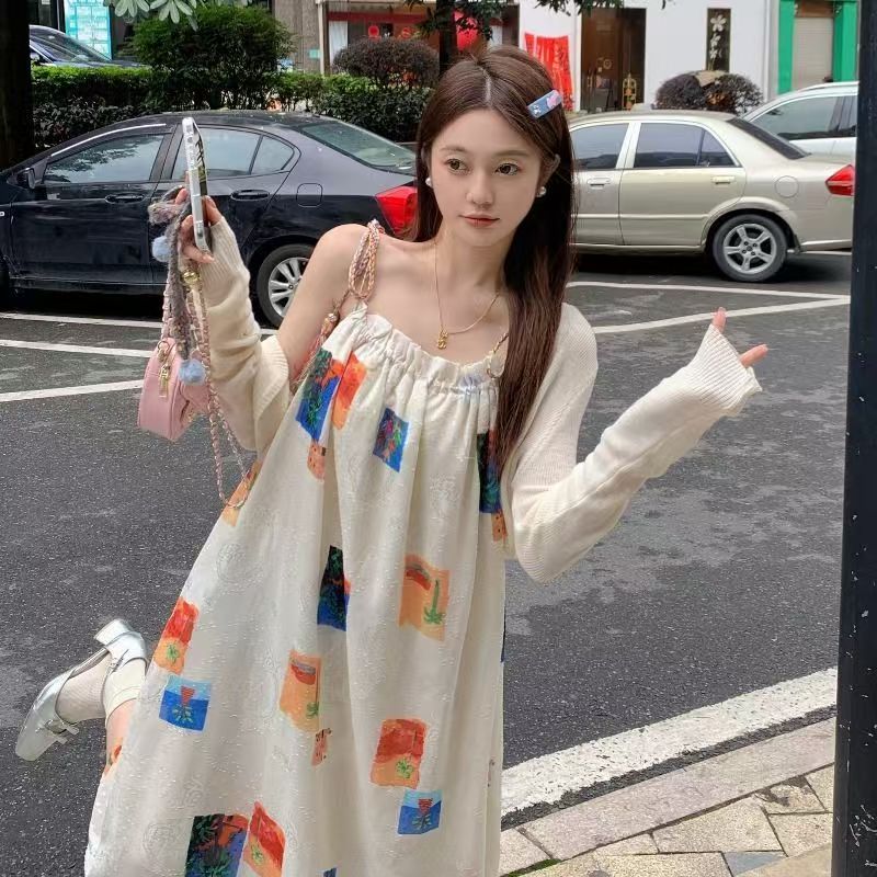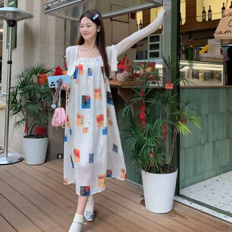 YF6009-图片色性感时尚无袖吊带A字彩格印花宽松显瘦大码海边风度假连