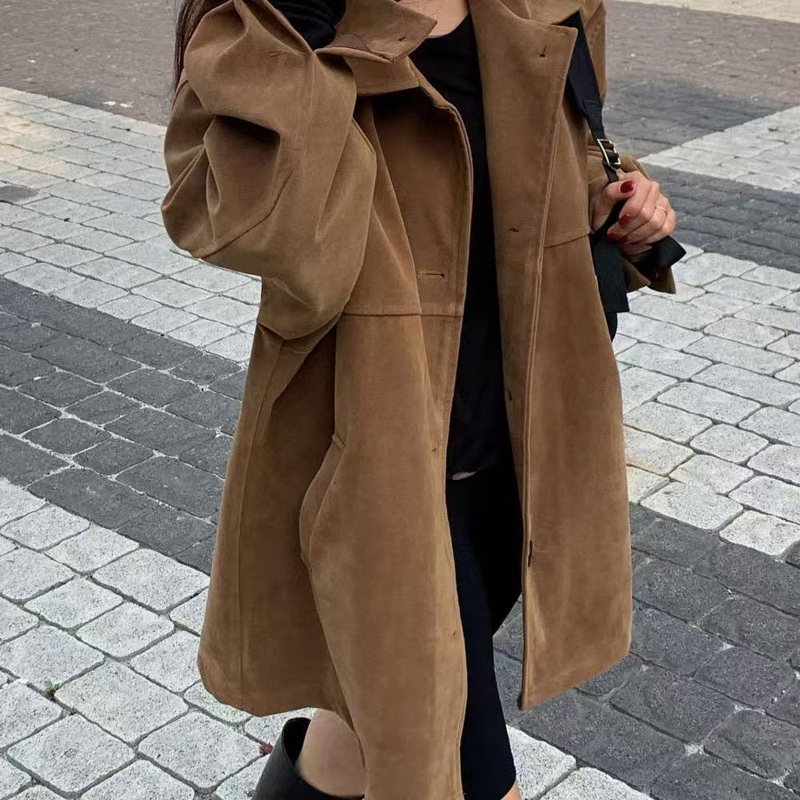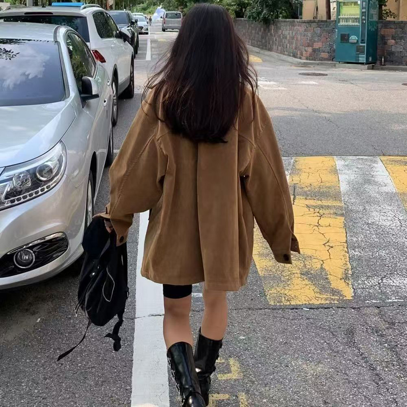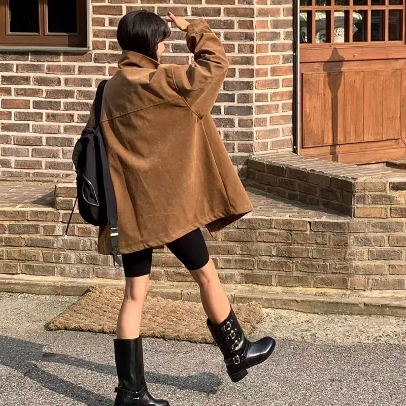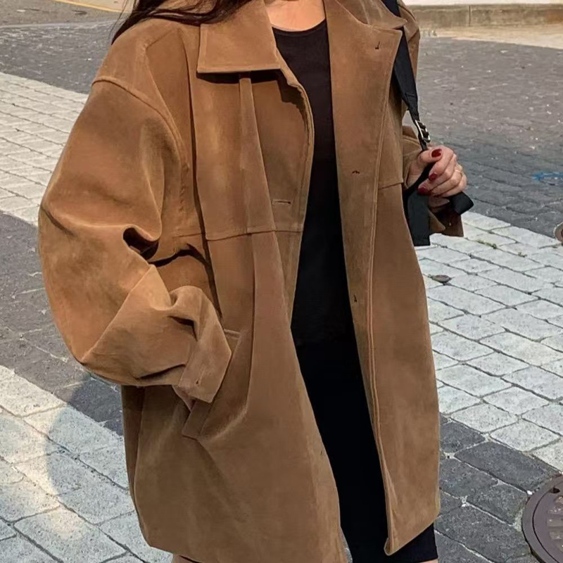 YF6011-图片色冬装长袖翻领排扣宽松大码仿麂皮磨毛绒面韩版休闲外套