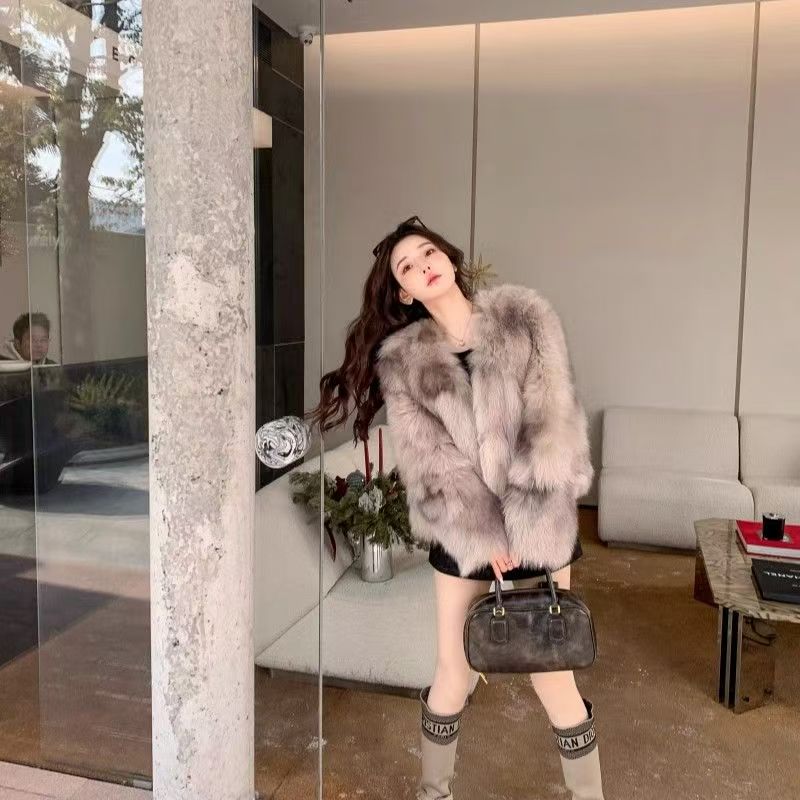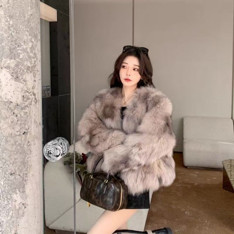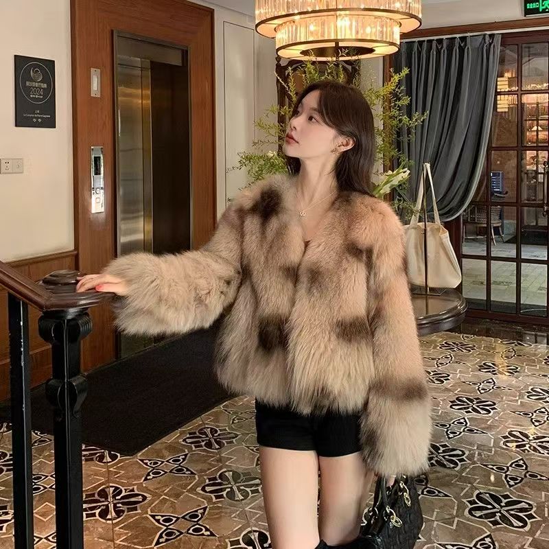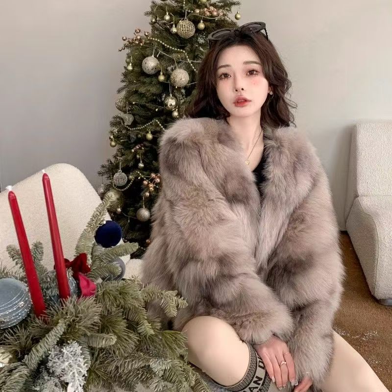 YF6034-图片色秋冬名媛气质长袖环保皮草仿狐狸毛斑纹设计宽松大码毛毛外套