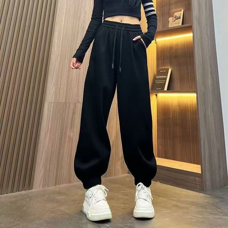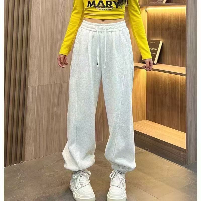YF6445-(4色入内)学院风韩版秋冬新款绑绳高腰直筒束腿运动休闲卫衣长裤