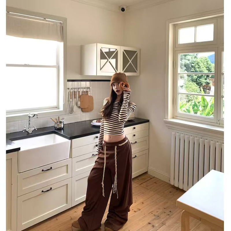 YF6067-图片色港式新款松紧腰绑绳直筒字母印花做旧洗水坠地感卫衣裤