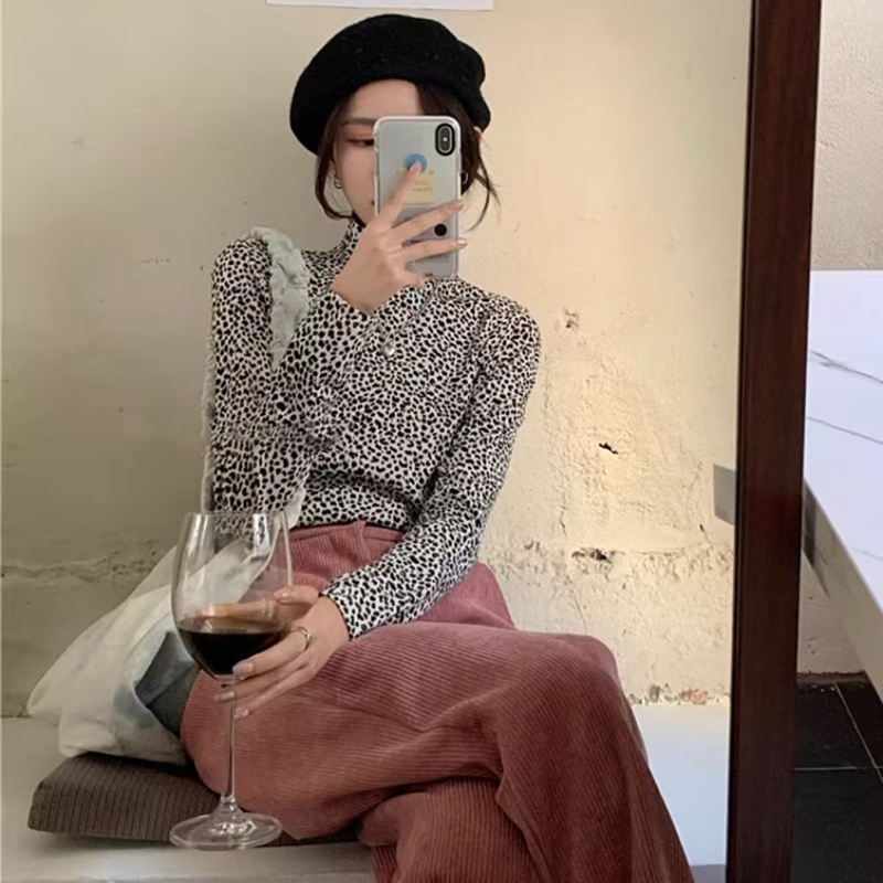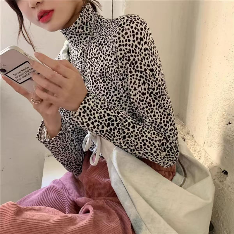 YF6070-图片色秋冬性感豹纹印花长袖半高领弹力修身时尚百搭气质打底衫
