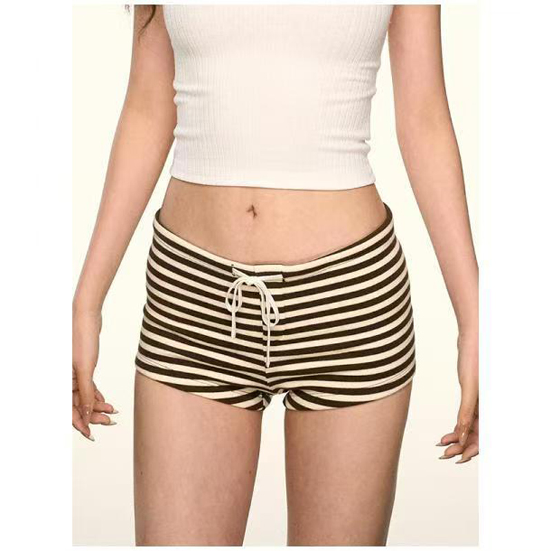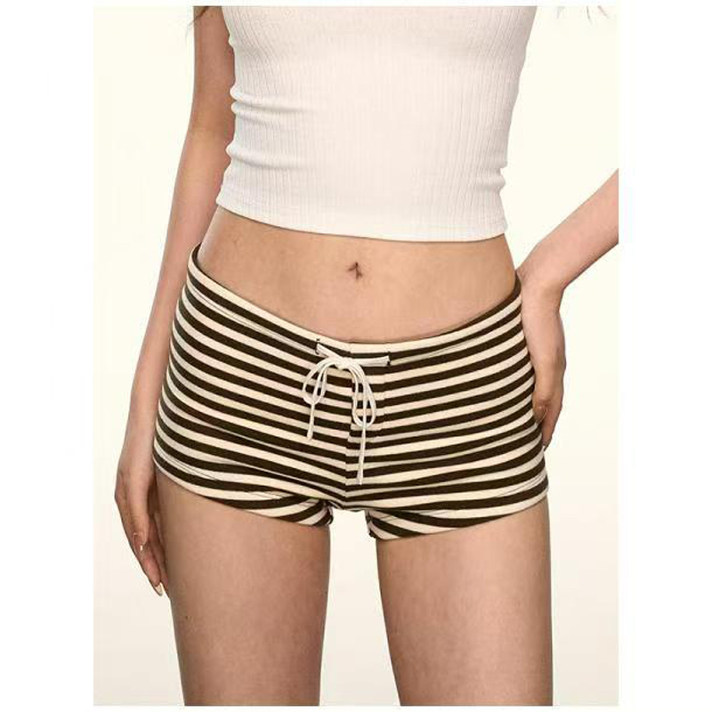 YF6087-图片色纯欲风低腰绑绳条纹超短设计外穿包臀显瘦辣妹百搭休闲裤子