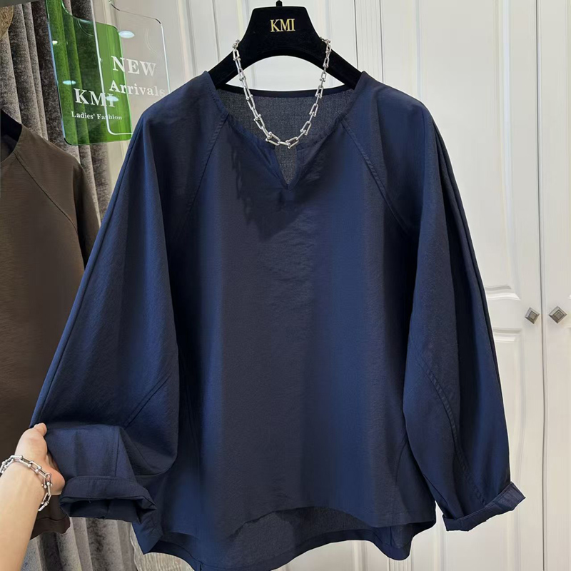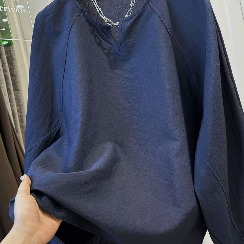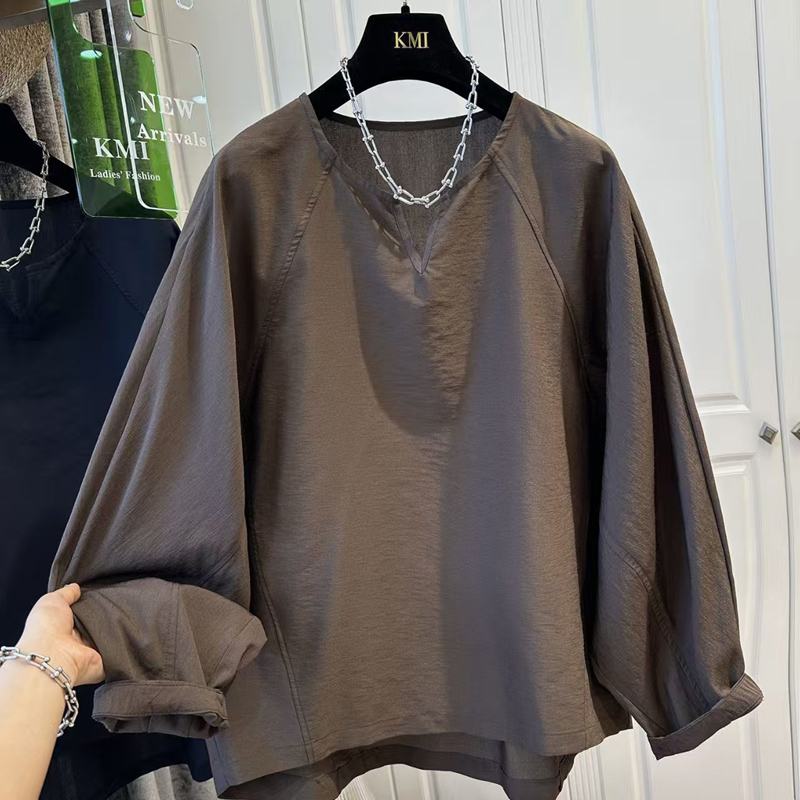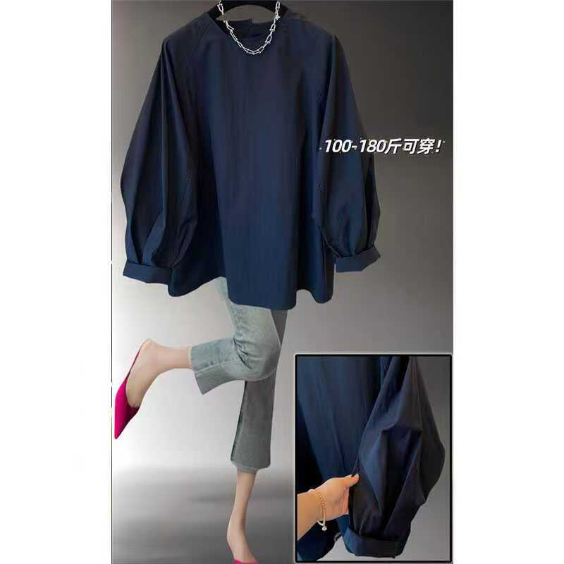 YF6123-(2色入内)韩版长袖连肩套头宽松大码蝙蝠袖设计感休闲显瘦上衣