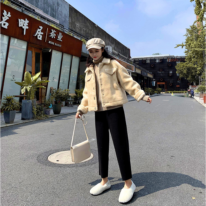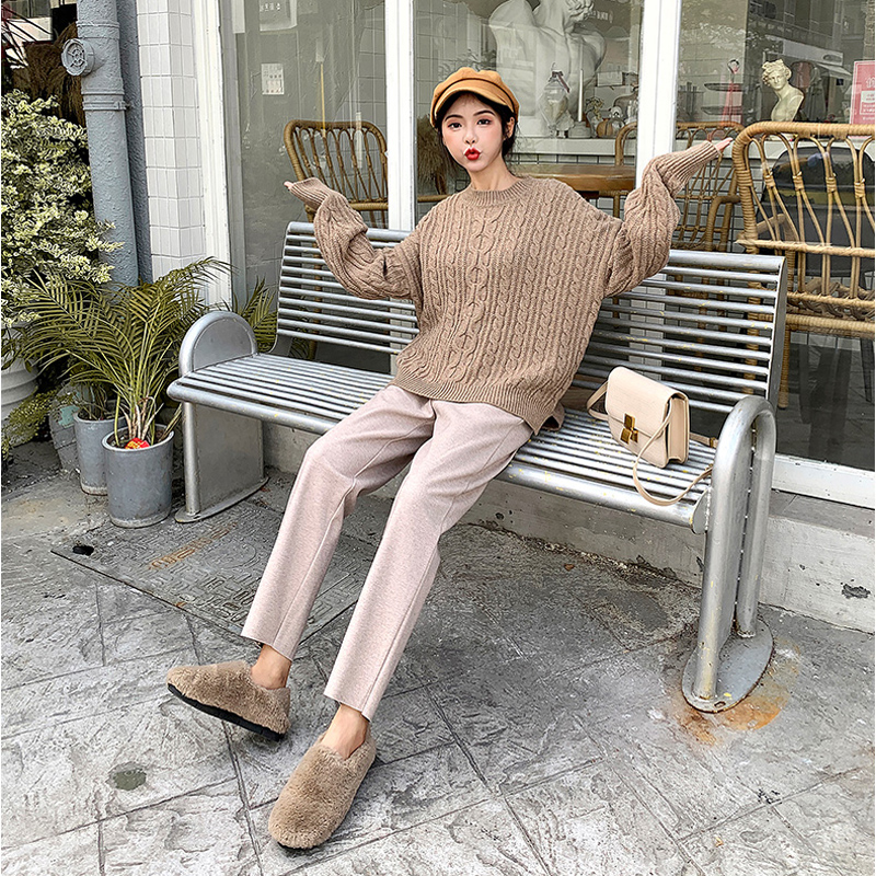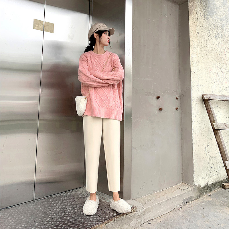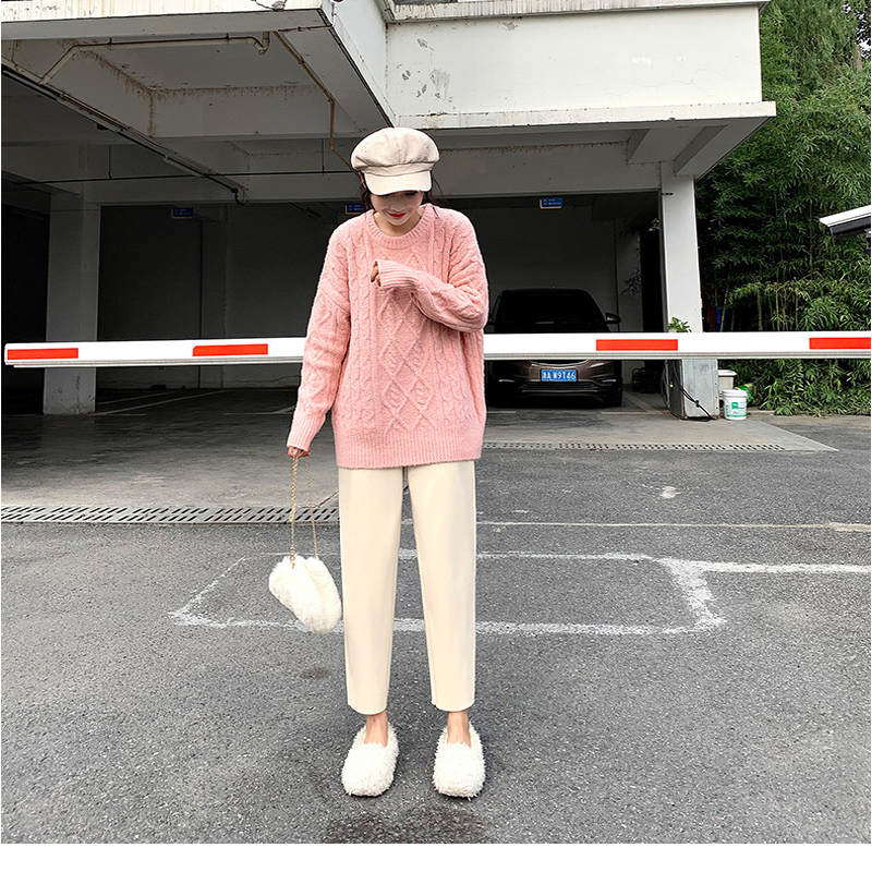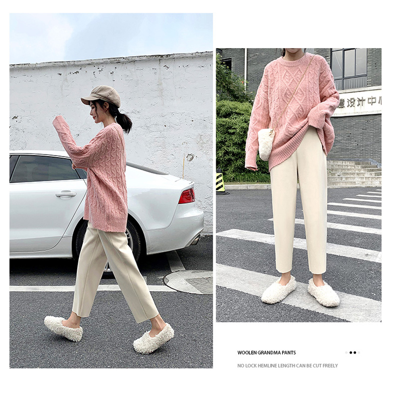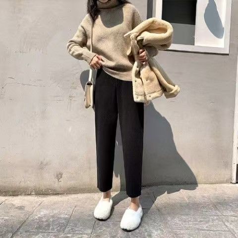 YF6126-(3色入内)冬季毛呢加厚款松紧腰收腹直筒萝卜型设计九分哈伦裤