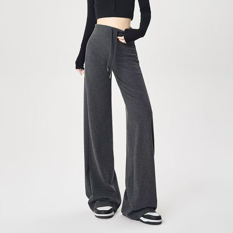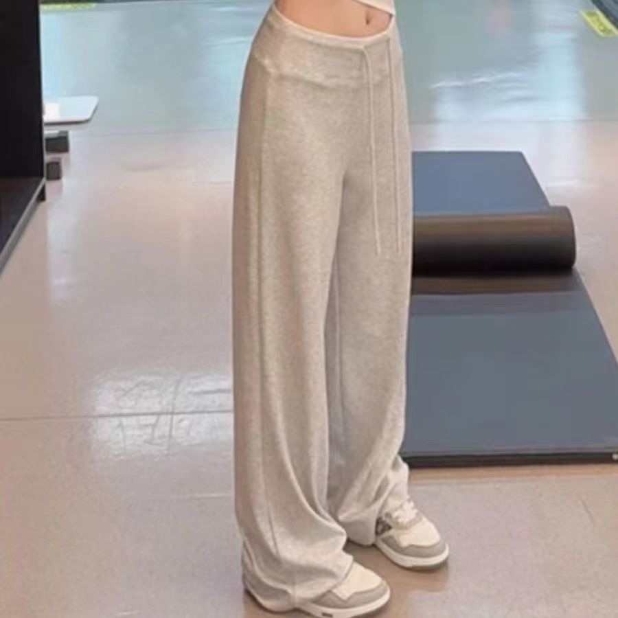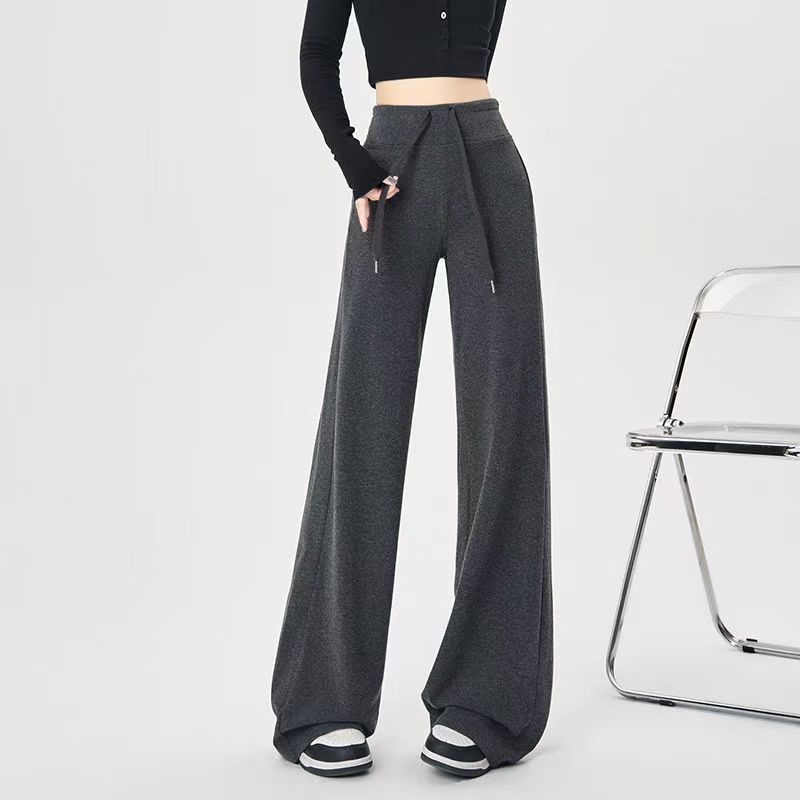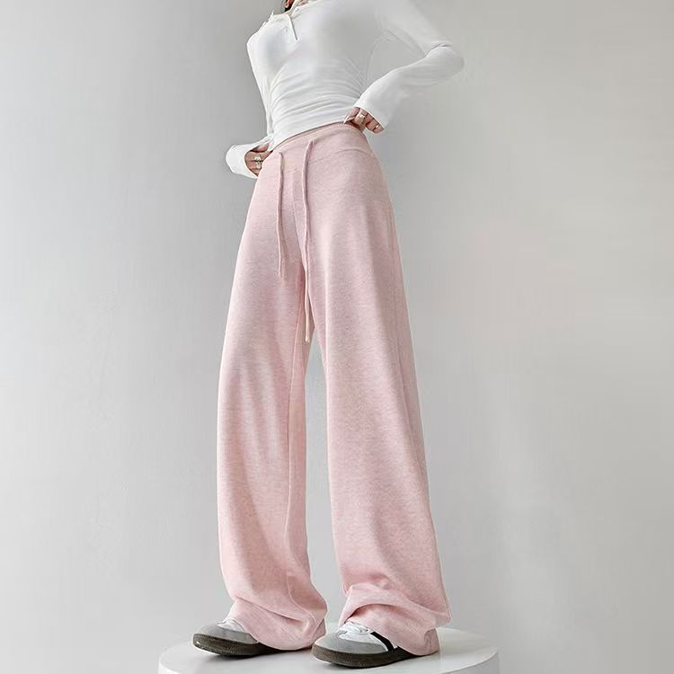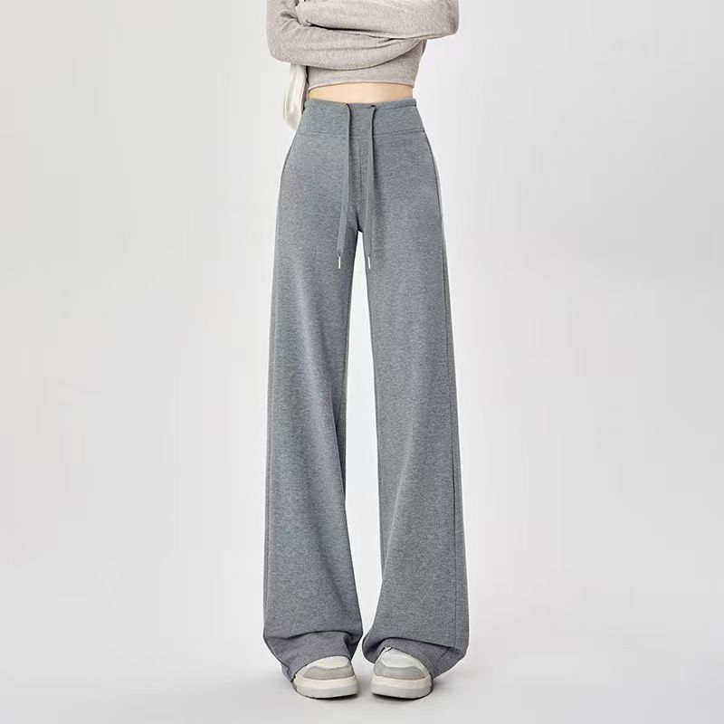 YF6141-(4色入内)秋冬时尚运动休闲抽绳收腹直筒坠地感纯色阔腿卫衣裤